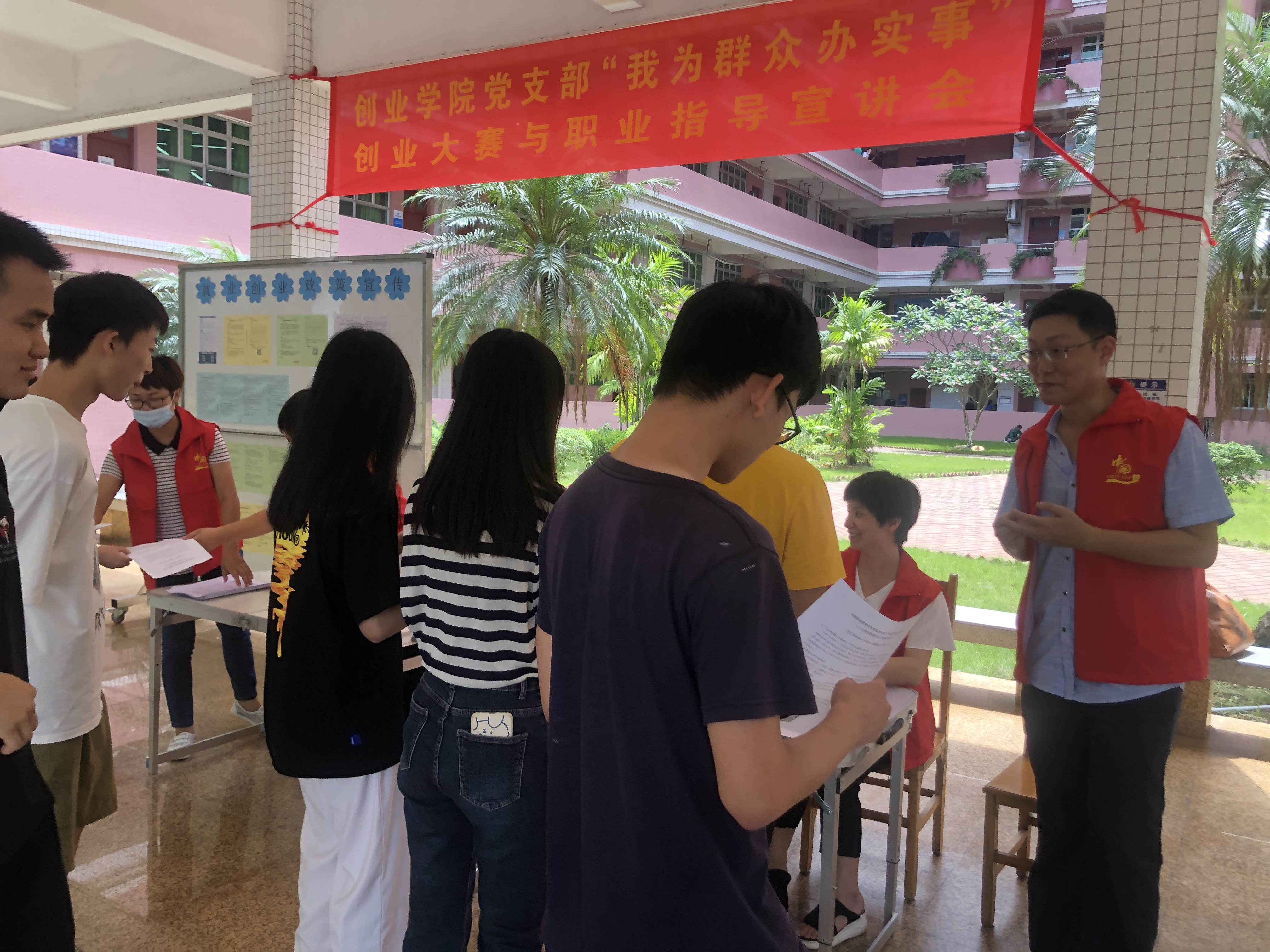 本网讯(创新创业教育学院 高文清) 为庆祝我党100 周年,充分激发党员全心全意为人民服务的热情,通过知行合一的实际行动,解决学生们与创新创业相关的“急难愁盼”。创新创业教育学院直属党支部结合实际情况,立足本职岗位,于2021年6月15日上午11点至16点在第三教学楼一楼平台开展了“我为群众办实事之答疑指导会”实践活动。